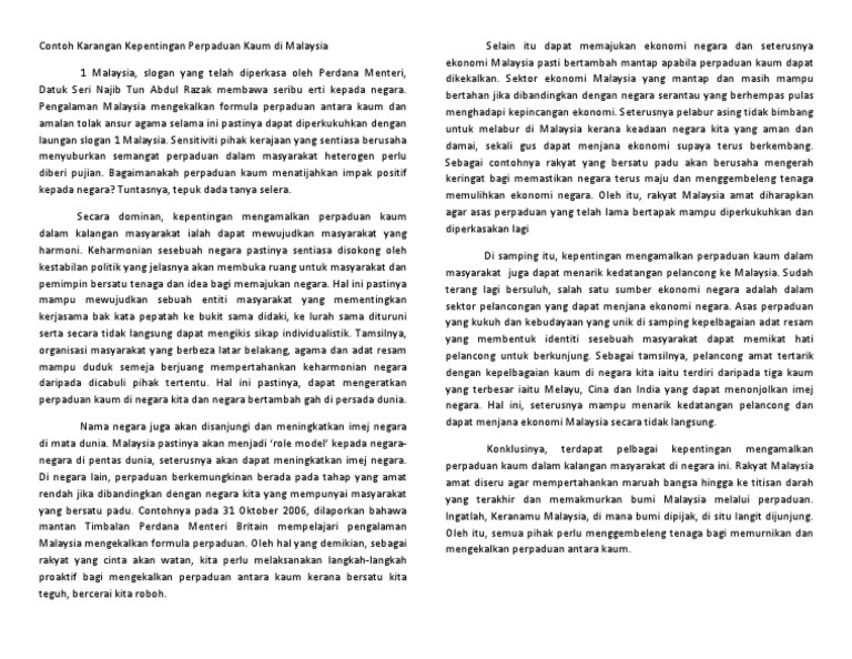 Contoh Karangan Kepentingan Perpaduan Kaum Di Malaysia Pdf